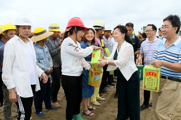 黃奕奕一行深入了解茂名港集團(tuán)常態(tài)化疫情防控、項(xiàng)目建設(shè)情況和職工防暑降溫工作,向高溫期間堅(jiān)守在一線的職工表示慰問(wèn),感謝他們?yōu)槊ㄔO(shè)和發(fā)展揮灑的汗水和心血。黃奕奕指出,開(kāi)展向一線職工“夏日送清涼”活動(dòng),是工會(huì)組織關(guān)心職工生活,保障群眾安全生產(chǎn)工作的重要舉措,也是工會(huì)組織作為職工“娘家人”的職責(zé)所在。她要求,茂名港集團(tuán)要積極行動(dòng),發(fā)揮好業(yè)主單位統(tǒng)籌協(xié)調(diào)職能,強(qiáng)化參建各方協(xié)作,主動(dòng)做好職工的降溫防暑工作,認(rèn)真落實(shí)各項(xiàng)勞動(dòng)保護(hù)措施,切實(shí)關(guān)心廣大職工的身心健康,同時(shí)做好防控疫情,做到防疫降溫并舉。參建各單位工會(huì)要關(guān)心一線職工的生產(chǎn)、生活,確保職工工作安全,生活安心。她希望,各一線職工要立足本職崗位,發(fā)揚(yáng)新時(shí)代工匠精神,鑄造濱海新區(qū)精品工程,為茂名經(jīng)濟(jì)發(fā)展提供更大助力。