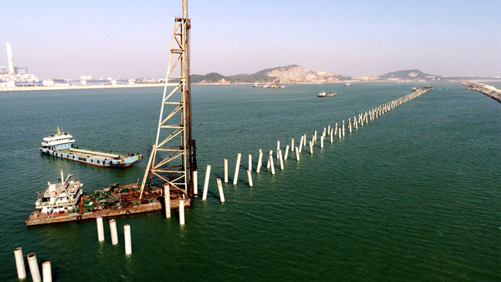油品碼頭工程新建1個10萬噸級油品泊位、4384米公用管廊及配套設施。水域公用管廊鋼管樁總量607根,其中斜樁322根,直樁285根。公共管廊建成后將為東區(qū)13個液體化工品泊位提供服務,是博賀新港區(qū)重要的前置性基礎工程,也是打造南海能源新通道的奠基工程。本次樁基工程提前完工,對工程整體進度推進具有重要意義。