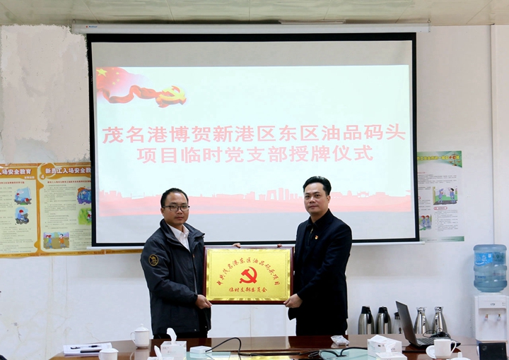 12月18日上午,茂名港集團(tuán)牽頭舉行博賀新港區(qū)東區(qū)油品碼頭項目工程臨時黨支部授牌儀式,集團(tuán)黨委副書記、工會主席肖炳璋為臨時黨支部授牌。臨時黨支部書記梁祖釗作表態(tài)發(fā)言并鄭重作出承諾。