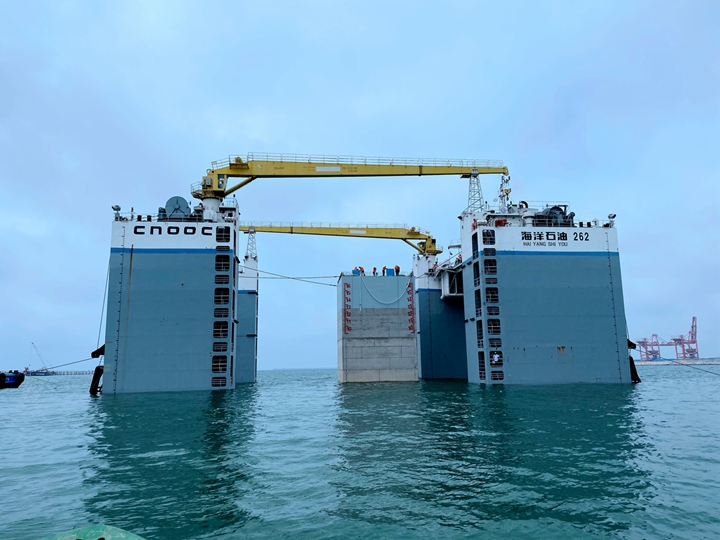 6月1日晚上8時,博賀新港區(qū)項目建設傳來喜訊——茂名港博賀新港區(qū)東區(qū)化工碼頭項目第一個沉箱順利安裝完成!