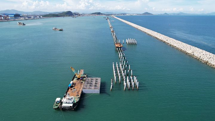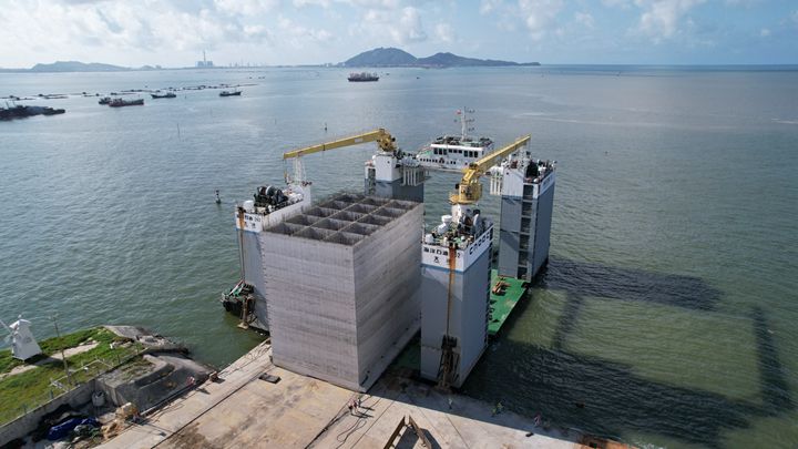 近日,茂名港博賀新港區(qū)東區(qū)油品碼頭工程首件3800噸重的沉箱順利出運安裝,項目的碼頭泊位水上施工正式拉開帷幕。