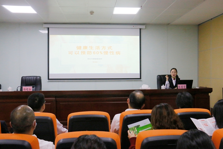 為踐行習(xí)近平總書記關(guān)于健康中國的重要論述,根據(jù)市衛(wèi)生健康局通知精神,結(jié)合集團(tuán)職工健康文化月活動(dòng)安排,12月16日,集團(tuán)工會(huì)邀請茂名市健康教育所副所長陳慧雯到集團(tuán)開展“好心茂名,健康大課堂”健康科普講座。集團(tuán)黨委委員、副總裁、工會(huì)主席楊超燦,集團(tuán)機(jī)關(guān)各部室、下屬企業(yè)共60余名干部職工參加了講座。