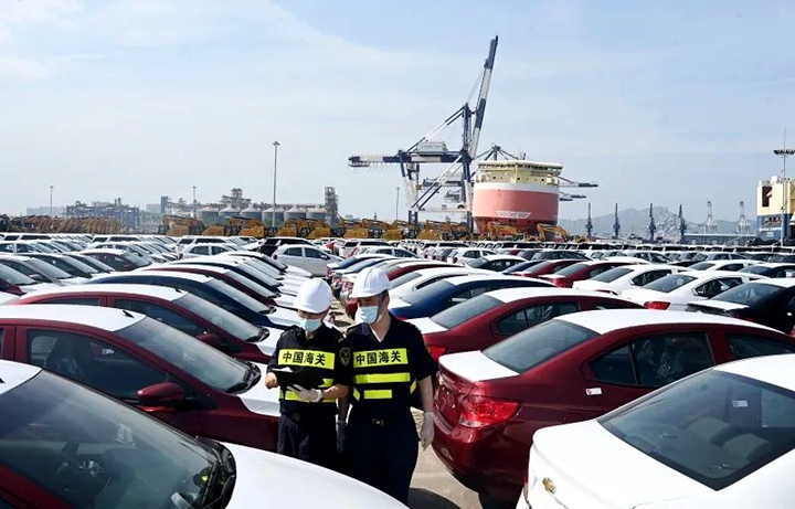 車船同時在港作業(yè)。在海關監(jiān)管下,來自韓國平澤港、光陽港的5060輛商品車陸續(xù)下船,進入指定堆場,同時早已準備就緒的2486輛商品車將分別載入“墨提斯”輪、“蒙扎”輪運往中東地區(qū)和歐洲國家市場。