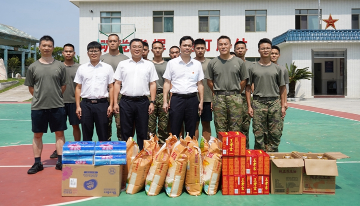 7月30日,根據(jù)集團(tuán)黨委工作部署,集團(tuán)黨委副書記、總裁肖炳璋率隊到蓮頭嶺某部開展“八一”建軍節(jié)擁軍慰問活動,向部隊官兵致以節(jié)日的祝福和誠摯的問候。 慰問中,肖炳璋與官兵們親切交談,詳細(xì)詢問了官兵的日常生活、學(xué)習(xí)和執(zhí)勤訓(xùn)練情況,對他們?yōu)槊?jīng)濟社會發(fā)展作出的重大貢獻(xiàn)表示衷心感謝和崇高敬意。他表示,茂名港集團(tuán)的快速發(fā)展,離不開駐地部隊的有力支持。集團(tuán)將一如既往地關(guān)心和支持軍隊建設(shè),用心用情用力做好擁軍優(yōu)屬工作。他希望,雙方不斷加強溝通交流,推動軍民融合深度發(fā)展,打造和諧穩(wěn)定的優(yōu)良港口營商環(huán)境,攜手共同應(yīng)對當(dāng)前復(fù)雜的經(jīng)濟形勢和多重困難挑戰(zhàn),共同譜寫新時代雙擁工作新篇章。