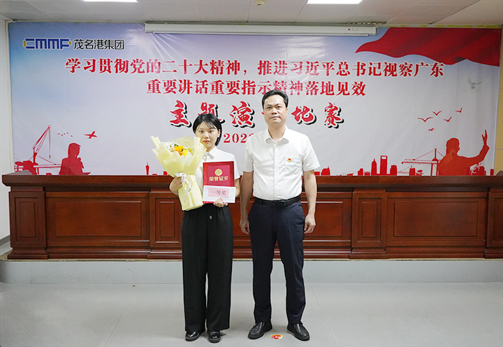 6月27日,茂名港集團(tuán)舉行“學(xué)習(xí)貫徹黨的二十大精神,推進(jìn)習(xí)近平總書記視察廣東重要講話重要指示精神落地見效”主題演講比賽決賽。集團(tuán)黨委副書記、總裁肖炳璋,副總裁李昱祺出席活動(dòng),并為獲獎(jiǎng)選手頒發(fā)了榮譽(yù)證書。