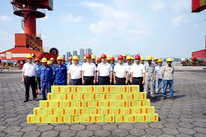 近日,茂名港集團(tuán)黨委副書記、總裁肖炳璋,茂名港集團(tuán)黨委委員、副總裁、工會主席楊超燦分別帶隊到集團(tuán)下屬港口經(jīng)營公司碼頭作業(yè)現(xiàn)場、中油王港公司庫區(qū)、博賀新港區(qū)重點(diǎn)項目施工現(xiàn)場等處“送清涼”,向奮斗在一線的職工傳達(dá)集團(tuán)黨委、集團(tuán)工會的問候與關(guān)懷,并為他們發(fā)放充足的解暑飲料。