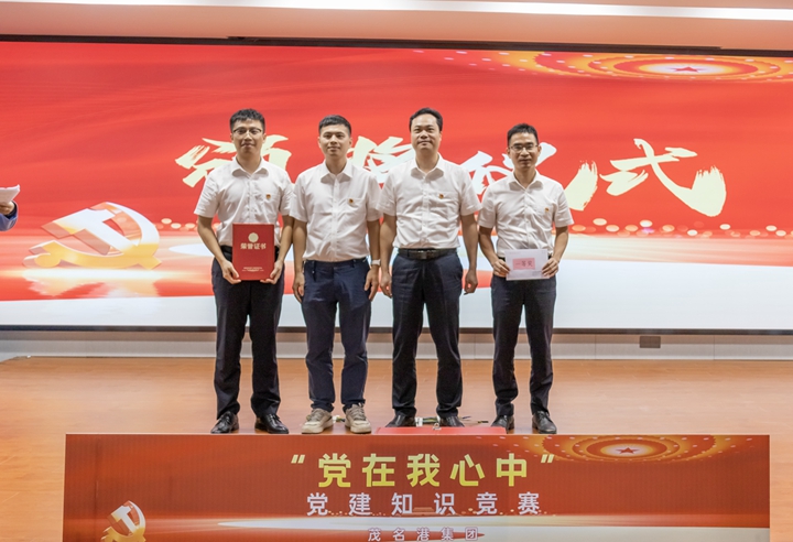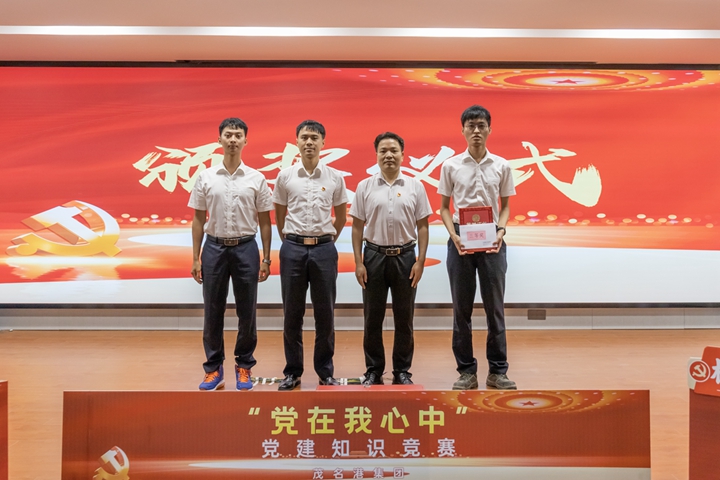 機(jī)關(guān)先鋒隊(duì)、物業(yè)勇闖隊(duì)、港口沖鋒隊(duì)、王港挑戰(zhàn)隊(duì)榮獲優(yōu)秀獎(jiǎng) 在陣陣掌聲中,集團(tuán)領(lǐng)導(dǎo)為獲獎(jiǎng)隊(duì)伍頒發(fā)了榮譽(yù)證書并進(jìn)行合影留念。 整場(chǎng)競(jìng)賽精彩紛呈,氣氛熱烈,選手之間通力合作,場(chǎng)上比分你追我趕,大家“賽”出了水平,“競(jìng)”出了風(fēng)采,充分體現(xiàn)了茂名港人積極奮進(jìn),努力拼搏的精神。集團(tuán)黨員干部以此為契機(jī),養(yǎng)成自學(xué)、好學(xué)的習(xí)慣,持之以恒、與時(shí)俱進(jìn)的學(xué)習(xí),避免知識(shí)老化、思想僵化、能力退化,在各自的崗位上掌握新方法、增長(zhǎng)新才干、解決新問題,把習(xí)近平新時(shí)代中國(guó)特色社會(huì)主義思想轉(zhuǎn)化為堅(jiān)定理想、錘煉黨性和指導(dǎo)實(shí)踐、推動(dòng)工作的強(qiáng)大力量,營(yíng)造了全集團(tuán)風(fēng)清氣正、積極向上、斗志昂揚(yáng)的干事氛圍。