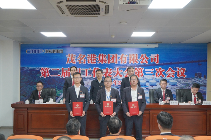 會(huì)上,肖炳璋向代表們作茂名港集團(tuán)第二屆職工代表大會(huì)第三次會(huì)議工作報(bào)告。報(bào)告全面回顧總結(jié)了2023年重點(diǎn)工作,安排部署了2024年集團(tuán)總體工作和主要任務(wù)目標(biāo)。報(bào)告指出,過去一年,集團(tuán)在市委、市政府的堅(jiān)強(qiáng)領(lǐng)導(dǎo)下,在市國(guó)資委的大力支持與幫助下,以習(xí)近平新時(shí)代中國(guó)特色社會(huì)主義思想為指導(dǎo),全面貫徹落實(shí)黨的二十大、二十屆二中全會(huì)和中央經(jīng)濟(jì)工作會(huì)議精神,深入學(xué)習(xí)貫徹習(xí)近平總書記視察廣東重要講話、重要指示精神,搶抓高質(zhì)量發(fā)展先機(jī),堅(jiān)持市場(chǎng)導(dǎo)向、效益為先、創(chuàng)新驅(qū)動(dòng)、管理為本,持續(xù)深化國(guó)企改革,推動(dòng)集團(tuán)發(fā)展建設(shè)取得積極成效,圓滿完成全年各項(xiàng)工作任務(wù)。其中,博賀新港區(qū)四個(gè)大型泊位(一個(gè)10萬噸級(jí)成品油碼頭、三個(gè)1~5萬噸級(jí)化工碼頭)、4.38公里配套管廊、81萬立方米油品化工庫(kù)區(qū)及現(xiàn)代化的港務(wù)中心建成即將投用;30萬噸級(jí)原油碼頭項(xiàng)目加速建設(shè);全年實(shí)現(xiàn)營(yíng)收超20億元,同比增長(zhǎng)149%;全面改革崗位體系,修訂完善員工招聘、培訓(xùn)培養(yǎng)等方面管理制度,推動(dòng)集團(tuán)人力資源結(jié)構(gòu)不斷優(yōu)化;投資合作結(jié)出碩果。