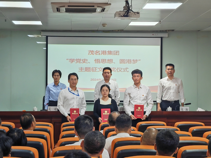 11月22日,茂名港集團舉行了“學黨史、悟思想、圓港夢”主題征文比賽頒獎儀式。集團工會主席馬云青出席會議并講話,為獲獎員工頒發(fā)榮譽證書。總裁助理陳湘參會并頒獎。