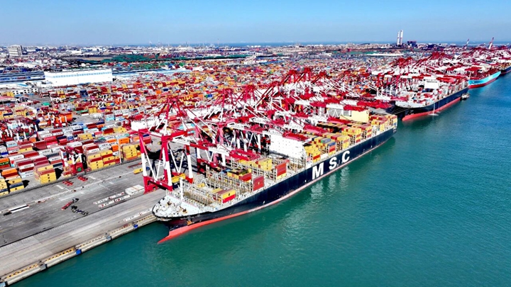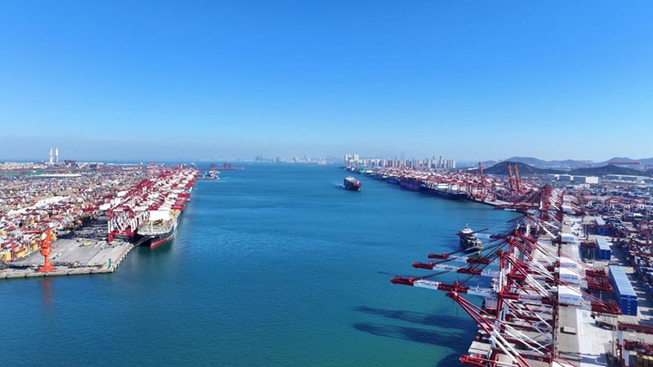 在建成全國(guó)首座全國(guó)產(chǎn)全自主自動(dòng)化碼頭基礎(chǔ)上,青島港加速智慧港口迭代升級(jí),推動(dòng)人工智能應(yīng)用中試基地成果轉(zhuǎn)化。今年以來,持續(xù)優(yōu)化、推廣自主研發(fā)的A-TOS(碼頭智能管控系統(tǒng)),13次刷新自動(dòng)化碼頭裝卸效率世界紀(jì)錄;推進(jìn)傳統(tǒng)碼頭自動(dòng)化改造,通過研發(fā)碼頭智能體、攻關(guān)自動(dòng)化裝卸關(guān)鍵技術(shù),實(shí)現(xiàn)全場(chǎng)景、全流程、全機(jī)種自動(dòng)化,助力集裝箱、紙漿、鐵礦石、糧食等貨種接連打破效率紀(jì)錄;打造“云港通”口岸線上服務(wù)平臺(tái),實(shí)現(xiàn)“關(guān)港通”智慧查驗(yàn),應(yīng)用全球首個(gè)港口服務(wù)大模型方舟TaaS,進(jìn)一步提升了裝卸作業(yè)的服務(wù)體驗(yàn)和決策效率。 智慧港口效率的提升離不開海關(guān)監(jiān)管服務(wù)的升級(jí)保障。青島海關(guān)充分發(fā)揮山東港口青島港在‘一帶一路’中的陸;ヂ(lián)優(yōu)勢(shì),推廣“先期機(jī)檢”“抵港直裝”“船邊直提”等自動(dòng)化作業(yè)模式,通過升級(jí)升級(jí)智能空軌、集裝箱順勢(shì)核重等智能化設(shè)施設(shè)備,將海關(guān)監(jiān)管無縫嵌入港口生產(chǎn)作業(yè),實(shí)現(xiàn)了海關(guān)與港口物流信息交互,為外貿(mào)企業(yè)打造了一條綠色、高效的出海物流通道。